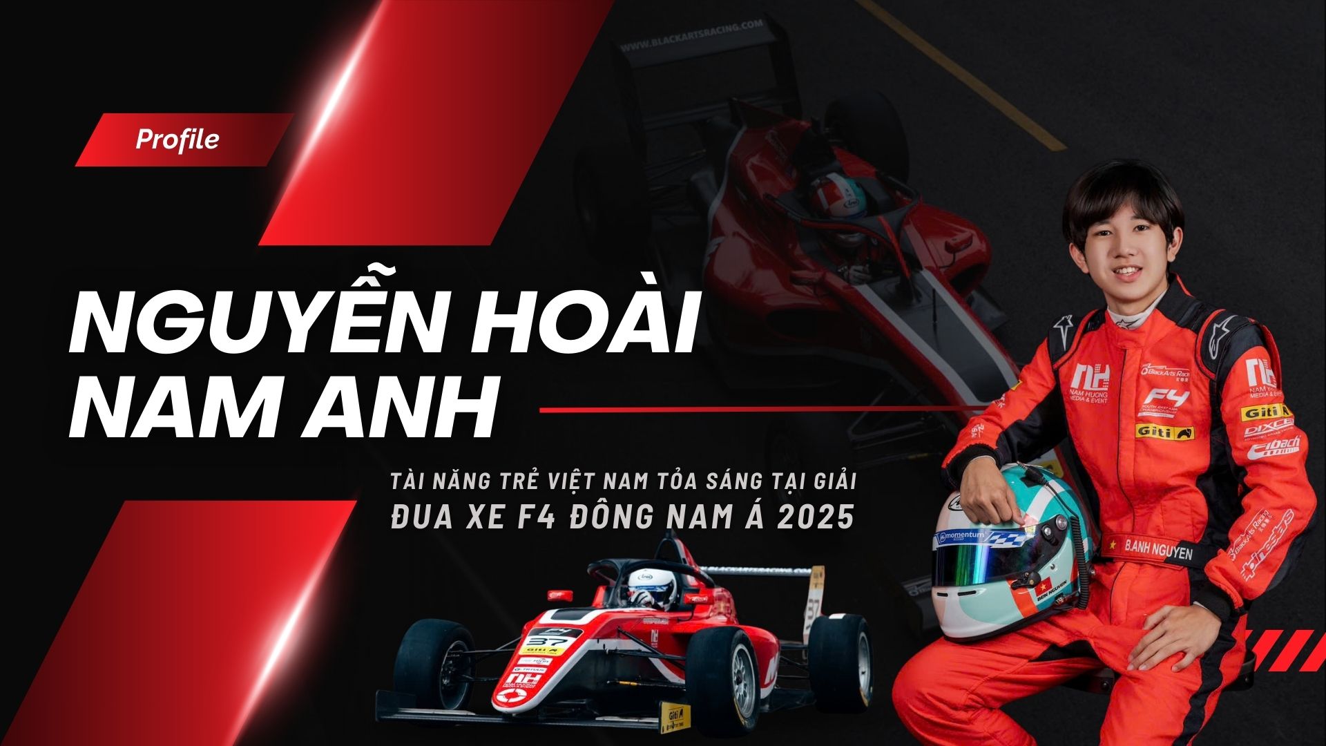 Nguyễn Hoài Nam Anh (tên thường gọi là Ben), con trai của Hoa khôi Thể thao 1995 Nguyễn Thu Hương, đã xuất sắc giành giải “Tay đua trẻ tài năng Southeast Asia” tại vòng hai giải đua xe F4 Đông Nam Á 2025. Dù chỉ mới 16 tuổi và có ba tháng học đua xe chuyên nghiệp, Nam Anh đã lọt vào top 3 chung cuộc cùng đội đua BlackArts Racing, vượt qua nhiều đối thủ có từ 2 đến 10 năm kinh nghiệm.